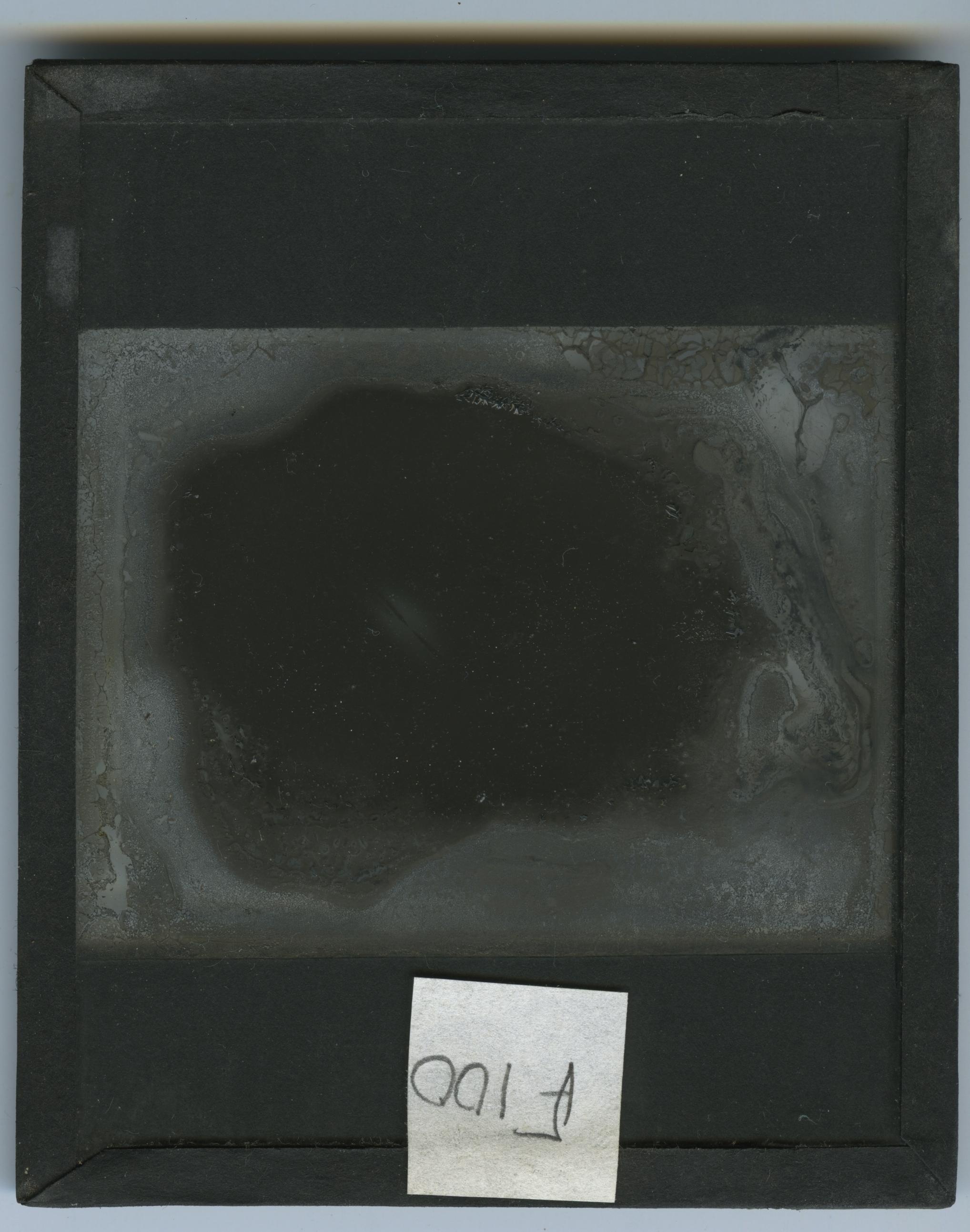 This is a badly degraded slide containing what looks to be a spiral galaxy.